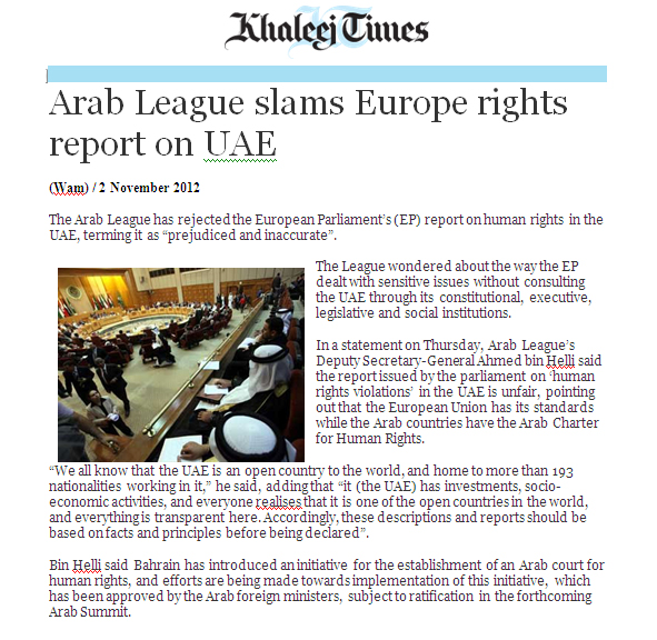 The Federal National Council (FNC) issued a statement in response to the decision issued by the EU Parliament concerning the human rights in the UAE. ‘Having considered the EU Parliament debate on human rights in the UAE, the FNC is shocked at the way in which the EU Parliament tackled such a sensitive issue without approaching the UAE. The FNC statement highlights the’The UAE achievements in the past four decades stand testimony to its respect for human rights for both its nationals and non-nationals…(Link)